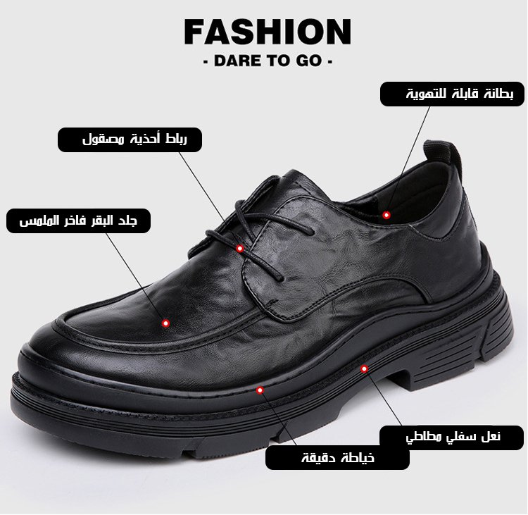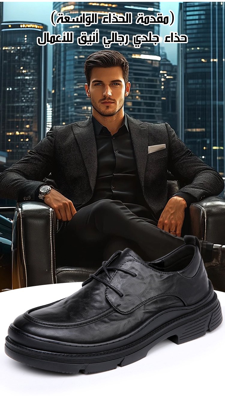 (مقدمة الحذاء الواسعة) حذاء جلدي رجالي أنيق للأعمال