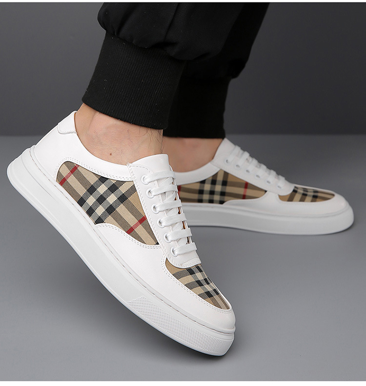 حذاء كاجوال راقي من جلد طبيعي وقماش مزين بنقوش مربعة كلاسيكية للرجال